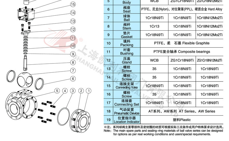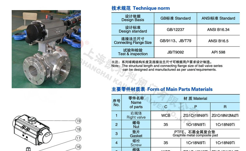 5、Q644F、Q645F氣動三通球閥所選用結構材料的品種、規格、性能及相應的產品標準。